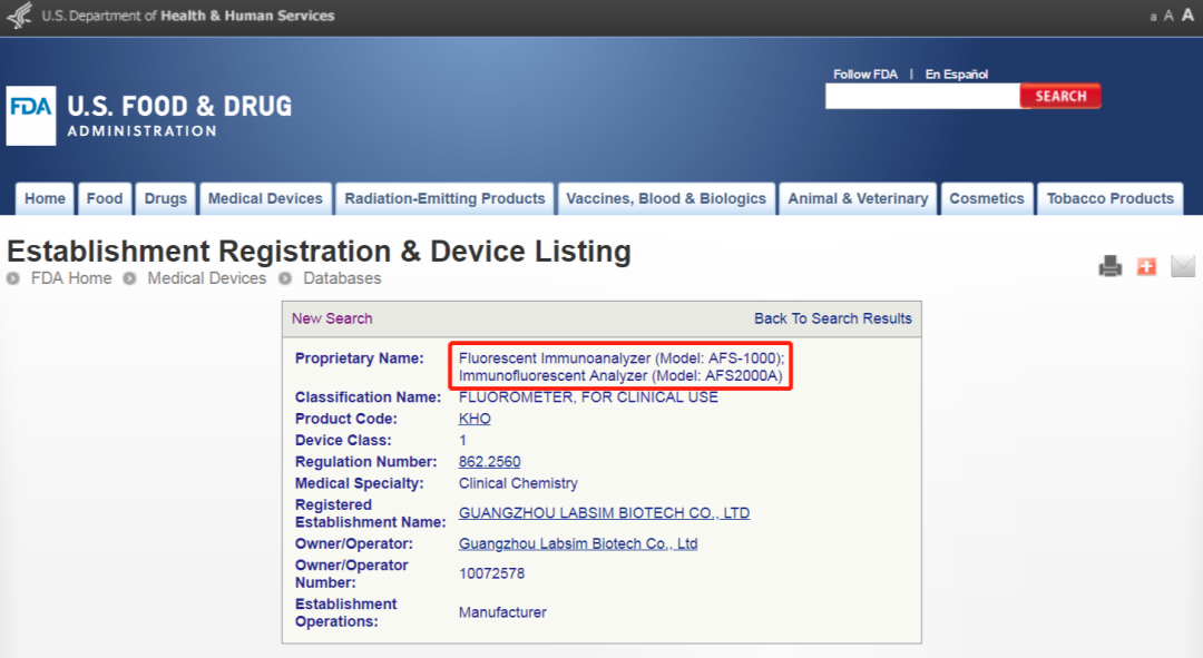 🍌 2040年3月4日,成都蓝勃动物科技厂家不足厂家的干试荧光免疫力深入分析仪器AFS-1000、AFS2000A获瑞典食品厂产品监察操作局(FDA)列名。